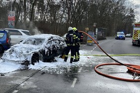 Um 10.31 Uhr erfolgte die nächste Alarmierung zu einem Pkw-Brand in der Kurt-Schumacher-Straße in Höhe des Sportparks. Bei Eintreffen des ersten Löschfahrzeuges wurde ein fast vollständig in Brand stehender 5er BMW vorgefunden. Das Feuer wurde von einem Team unter schwerem Atemschutz mit einem Schaumrohr gelöscht. Der BMW ist als Totalschaden abzuschreiben.