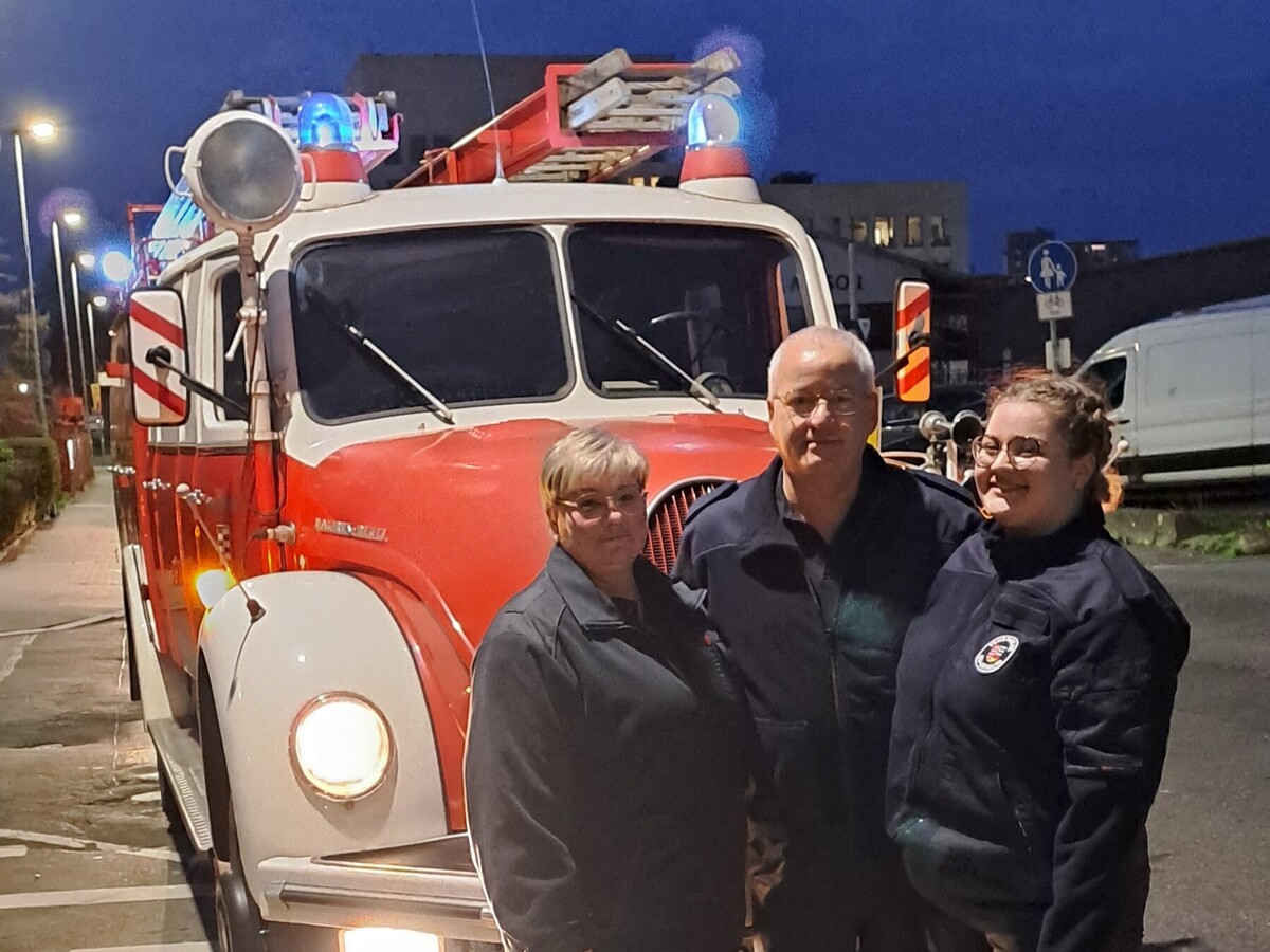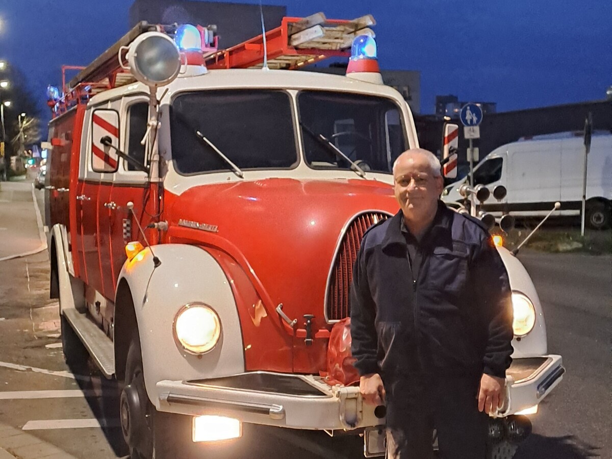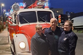 Vor dem Dienst hatten die Kameraden eine Überraschung für Stefan Werner parat. Er wurde zu Hause abgeholt - mit zwei Oldtimer Fahrzeugen: einem Löschgruppenfahrzeug und einer Drehleiter der Freiwilligen Feuerwehr Neu-Isenburg.